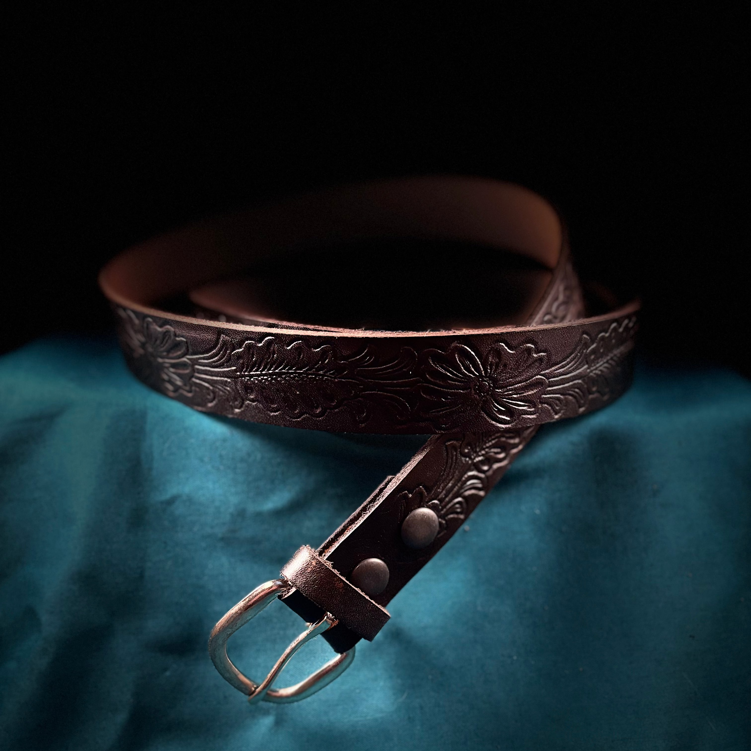 This premium handcrafted  leather belt offers timeless sophistication with superior durability. Meticulously constructed from quality leather, The Daisy design ensures versatile pairing with both formal and casual attire. The professional finish maintains its appearance through regular wear while developing a distinctive patina over time.